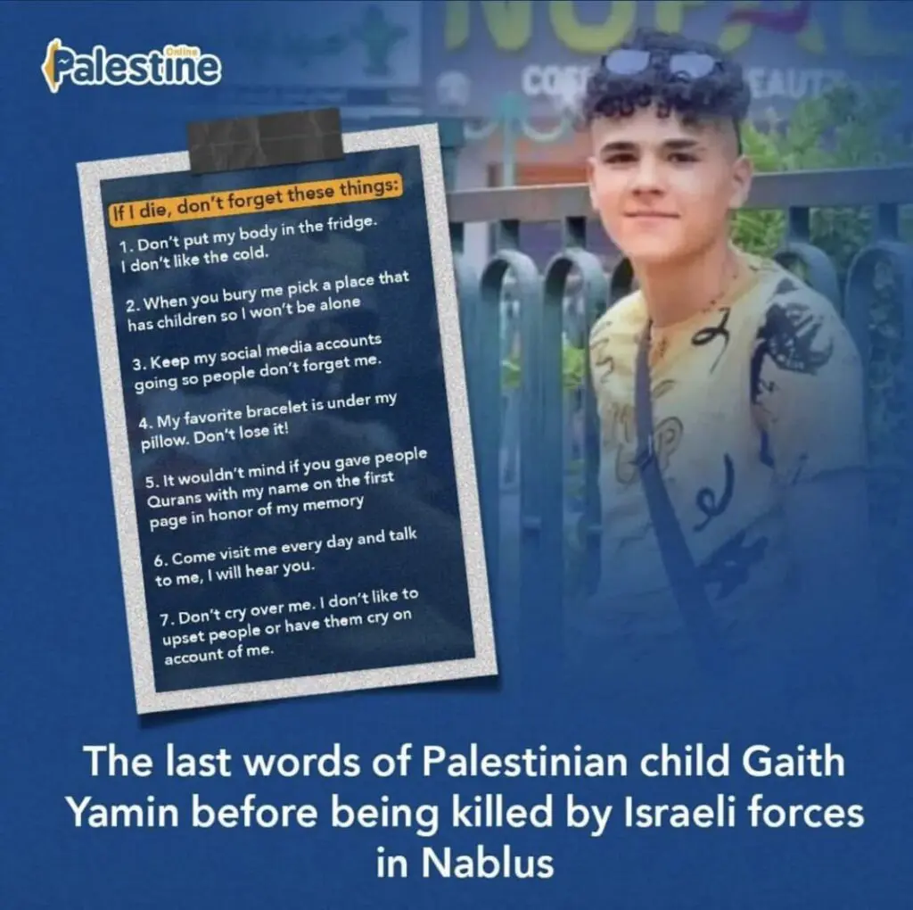 Le testament bouleversant de Ghaith Rafeeq Yamin (traduction ci-dessous)