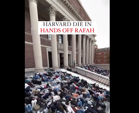 Harvard, Boston : des étudiants de la prestigieuse université américaine ont effectué un “die-in” sur les marches de la bibliothèque Widener, afin de protester contre l’intolérable offensive militaire à Rafah, dont les bombardements ont déjà tué des centaines de civils palestiniens.