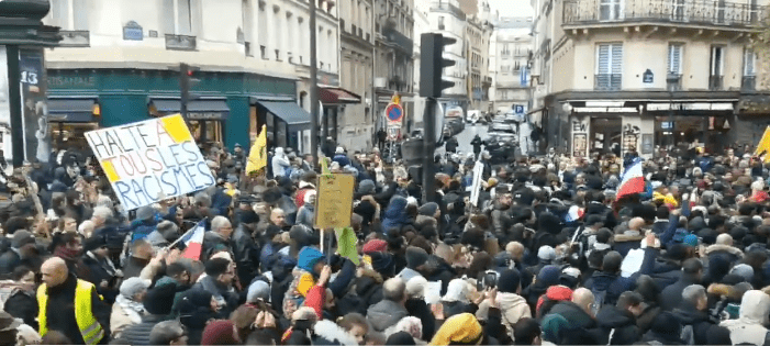 Le 10 novembre à Paris, beaucoup criaient « le problème, c’est pas le voile, c’est la misère sociale » avec la variante « c’est le grand capital ».