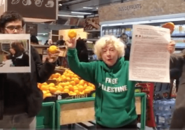 Action BDS chez Auchan pour alerter sur les produits de l’occupation israélienne et la législation sur l’étiquetage. En savoir plus