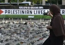 4 500 paires de chaussures déposées à Bruxelles pour dénoncer les massacres de Palestiniens par l’armée israélienne. En savoir plus