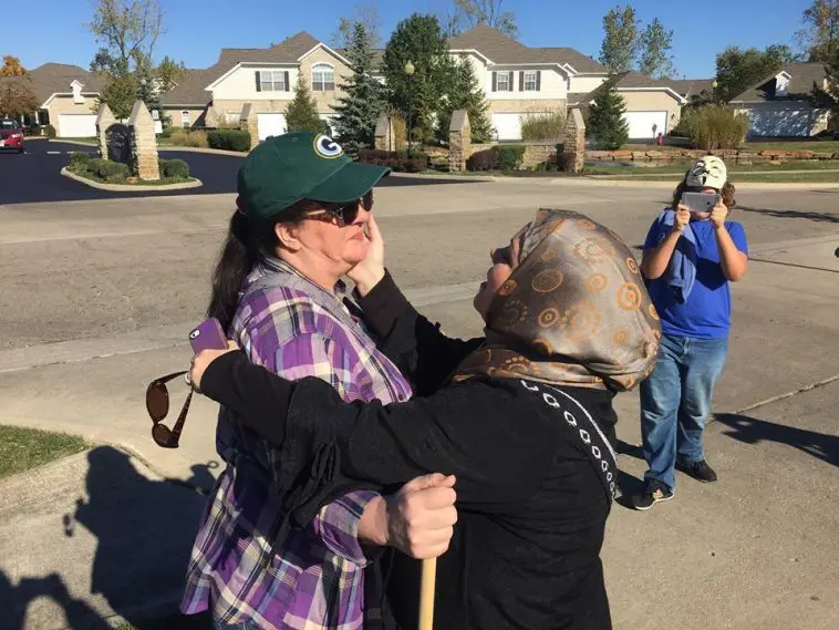 Dans le Michigan, c’est une tout autre scène qui s’est produite, lorsque la seule et unique manifestante à protester « contre l’islam violent et la loi de la Sharia » devant la mosquée locale a fini par ravaler son animosité passionnelle, baissant sa garde et ses banderoles haineuses pour tomber dans les bras d’une fidèle.