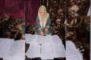 « C’était mon rêve d’enfance d’écrire le Coran à la main et avant de l’écrire, j’ai appris l’art de la calligraphie », a-t-elle confié, ajoutant avec émotion : « Ma famille m’a soutenue de tout cœur dans cette entreprise. Je tiens à remercier mon cousin, le Dr Seerat Wani, et mon professeur, Adil Rehman. Tous les deux m’ont constamment aidée et encouragée.»