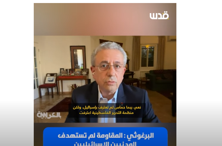 « D’abord, je tiens à dire que je ne fais pas partie de l’Autorité palestinienne. En fait, je représente un mouvement démocratique palestinien, appelé « l’Initiative Nationale Palestinienne », qui n’est ni le Fatah, ni le Hamas. Et bien sûr, je ne suis pas affilié au Hamas.