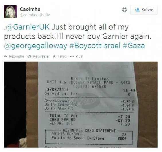 L'appel au boycott de Garnier sur Twitter et par-delà les frontières :