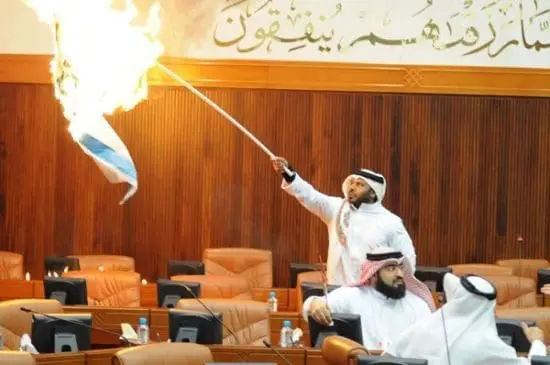 Un député Bahreïnien a mis le feu à un drapeau israélien au cours d'une session parlementaire pour exprimer son soutien aux Palestiniens de Gaza. Oussama al-Tamimi a précisé qu'il cherchait à «envoyer un message clair à la communauté internationale" sur le soutien de Bahreïn à la population de Gaza. Selon l'Associated Press, le parlementaire a clandestinement amené de l'essence dans la chambre des députés pour mettre le feu au drapeau en pleine séance. Tamimi est un député indépendant, particulièrement critique envers la monarchie sunnite.