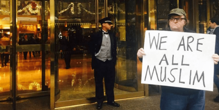 Michaël Moore défend les musulmans face à l'islamophobie de Donald Trump, affirmant que nous sommes tous unis au-delà des origines.