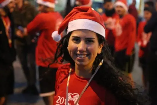 Beit Jala, Bethléem: Ghadeer Karoufeh a aidé à organiser une « Santa Run » (Marathon de Noël) annuelle dans le village palestinien occupé de Beit Jala. La course comprend des personnes de tous âges s’habillant en costumes de Père Noël. “St. Nicolas aurait vécu à Beit Jala. Les gens essaient de préserver le patrimoine du village. Ici, les gens peuvent sentir l’esprit de Noël. «