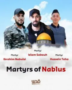 Une foule impressionnante a accompagné vers leur dernière demeure, à Naplouse, Ibrahim al-Nabulsi, 26 ans, chef de la branche armée du Fatah, Hussain Jamal Taha, 16 ans, et Islam Sabouh, 25 ans, et à Hébron, Momen Jaber, 16 ans, fraîchement titulaire du baccalauréat, pour la plus grande fierté des siens. (voir vidéo ci-dessous)